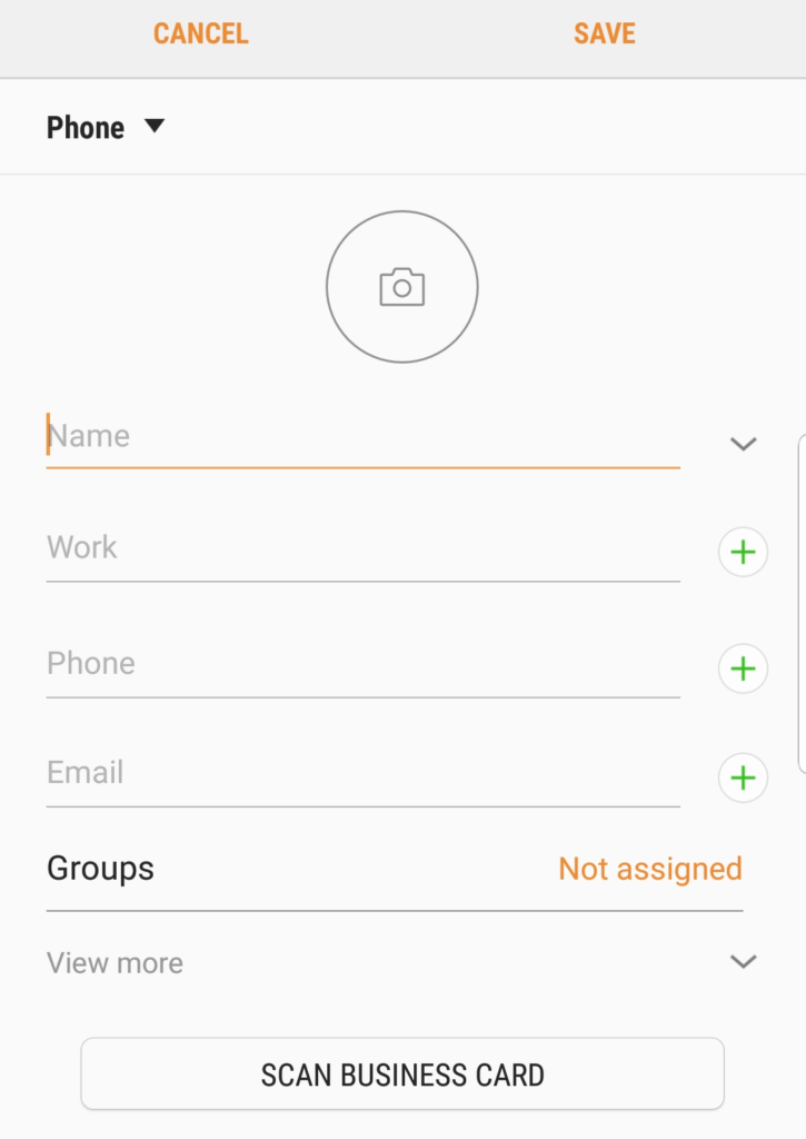 You may add a contact by pressing on the floating Add Contact icon found on the lower right portion of the screen. This will open the add contact page where you can fill in the contact’s details. (Note: Saving as PBX contact is not an available option.)