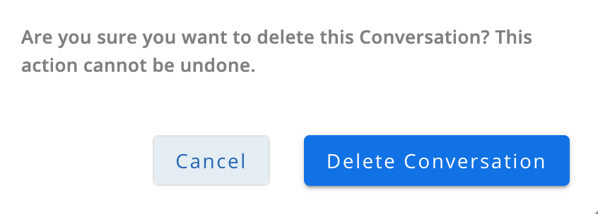 Please keep in mind SMS conversations cannot be recovered after they are deleted. If a user opts to delete an SMS conversation, they will be prompted with the confirmation message below before deletion.
